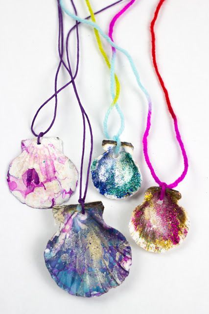 Enweder kann man die Muscheln vorgefertigt mit Loch kaufen, oder man bohrt selbst ein Loch (Muscheln gehen schnell kaputt)z, oder man befestigt die Kette mit Leim. Je nach Option solltest du im Vorhinein testen, ob die gewünschte Variante funktioniert. Danach musst du nur noch die Bastelmaterialien für die Kinder bereitstellen und schon kann der Meerjungfrauen-Spass beginnen.