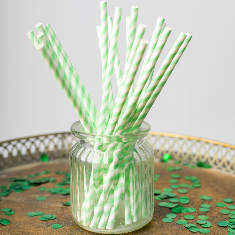 Trinkhalme Hellgrün gestreift, 20 Stk.