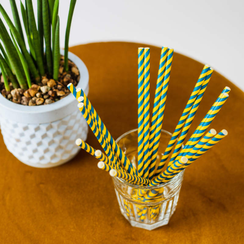 Trinkhalme Gelb und Blau gestreift, 20 Stk.