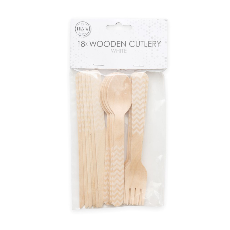 Produktinformationen "Holzbesteck Weiss, 18 Stk."