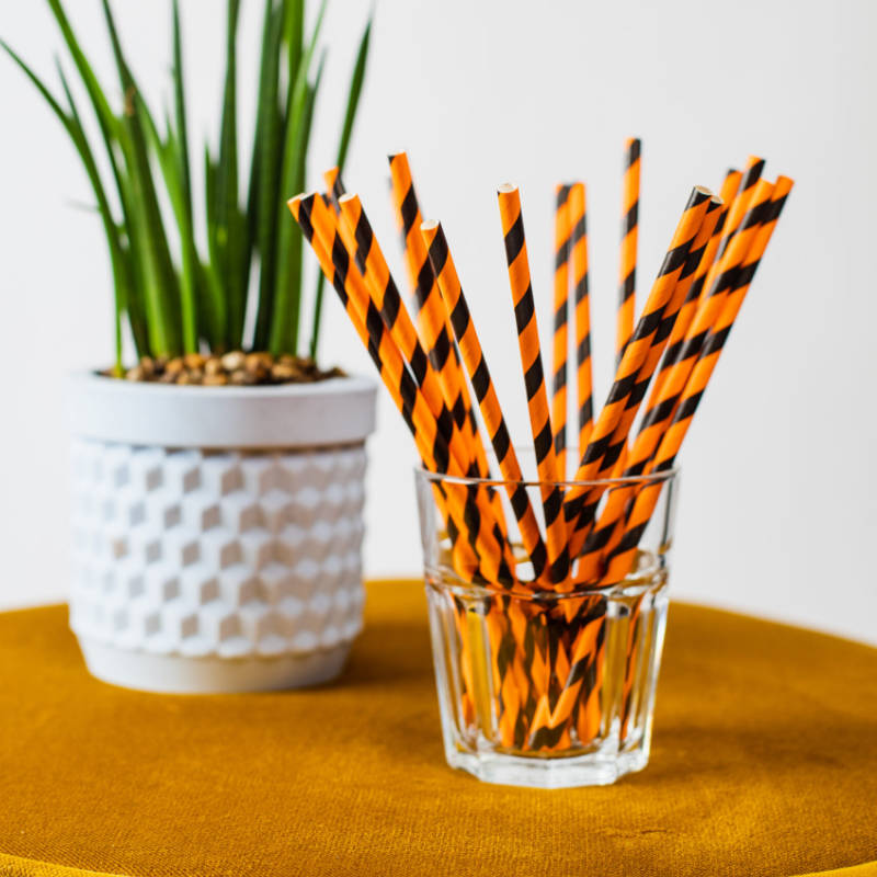 Trinkhalme Schwarz und Orange gestreift, 20 Stk.