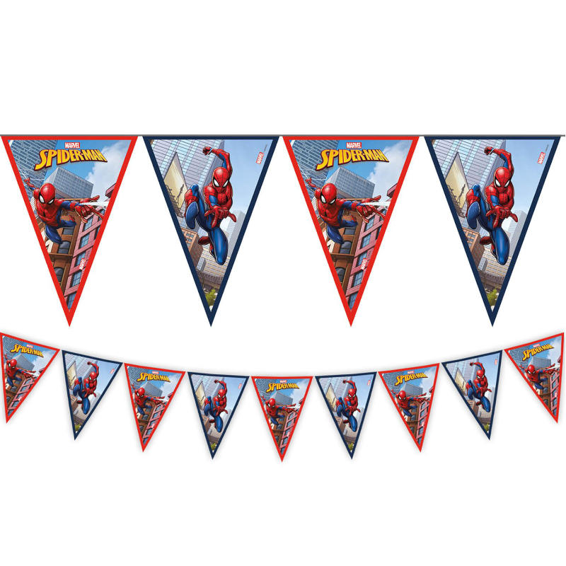Egal ob für einen Kindergeburtstag oder sonstige Feiern: Diese Wimpelkette im Spiderman Motiv passt zu jedem Anlass mit dem Motto Spiderman!