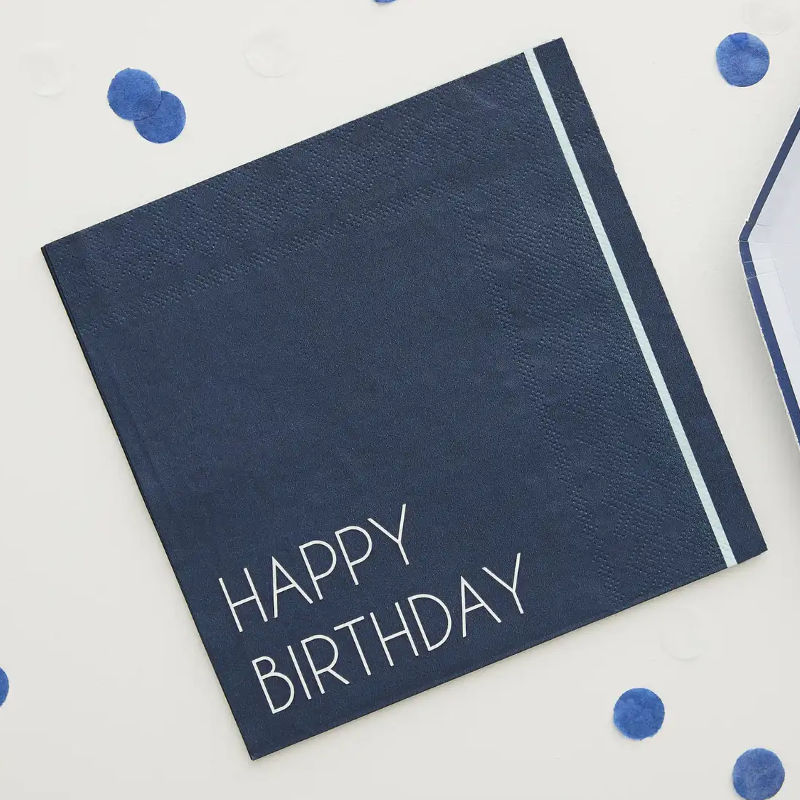 Servietten Happy Birthday Dunkelblau, 16 Stk.