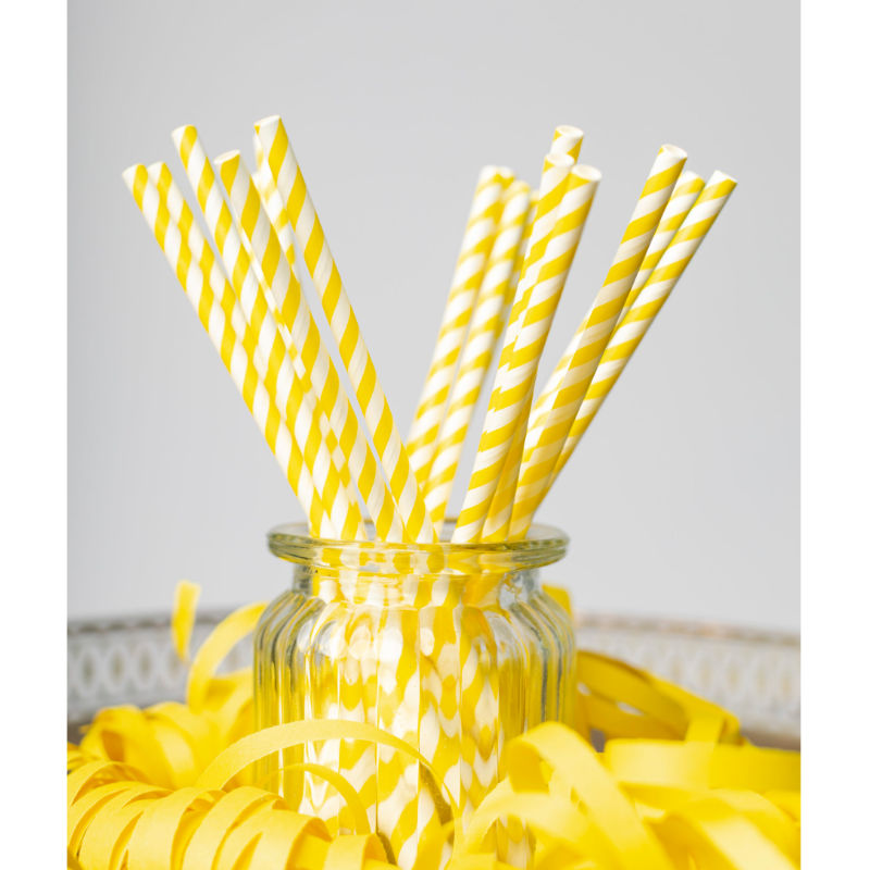 Pailles à boire jaune rayé, 20 pcs.