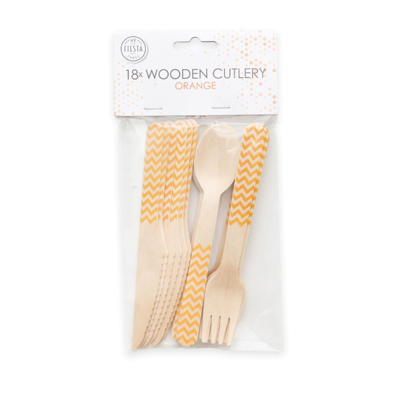 Couverts en bois orange, 18 pcs.