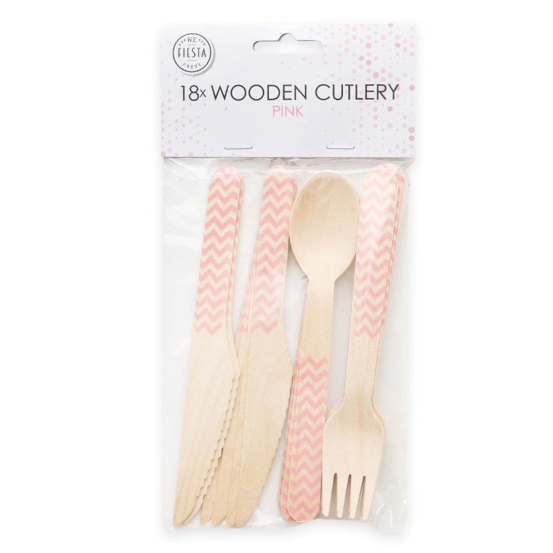 Couverts en bois Pink, 18 pcs.