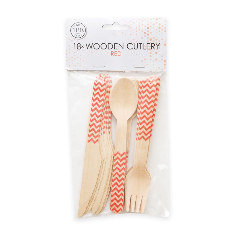 Informations sur le produit "Couverts en bois rouge, 18 pcs."