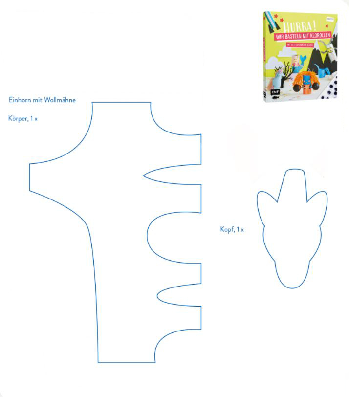 - Prends ensuite le modèle et reporte-le sur le rouleau de papier toilette à l'aide d'un crayon. Découpe ensuite le tout en suivant les lignes. Plie la tête de la licorne à l'endroit marqué.