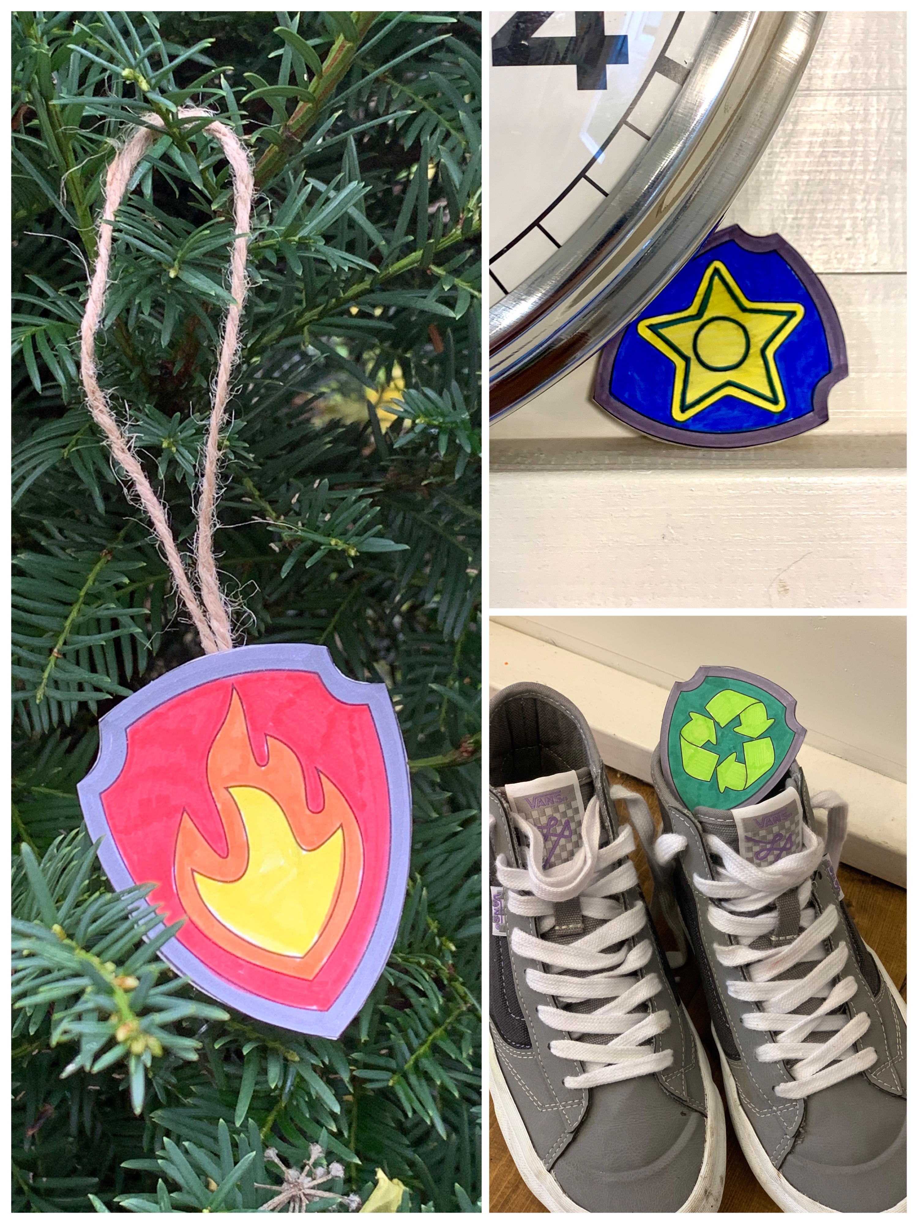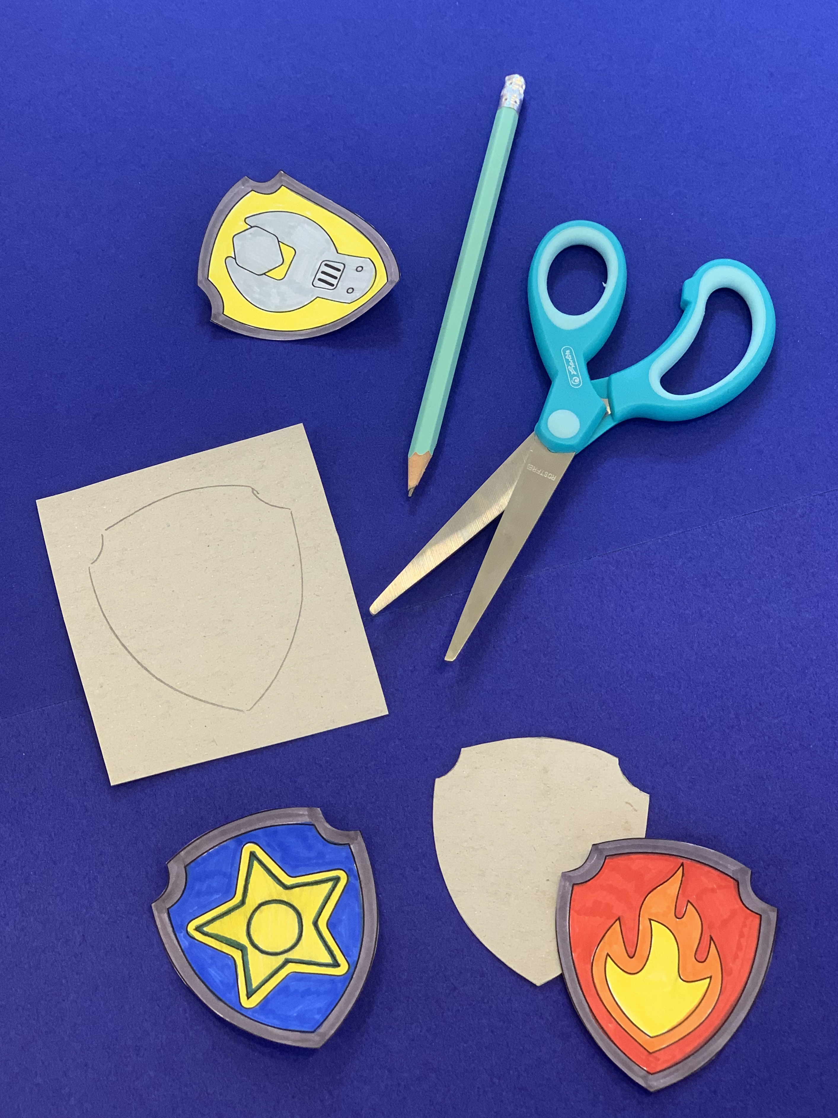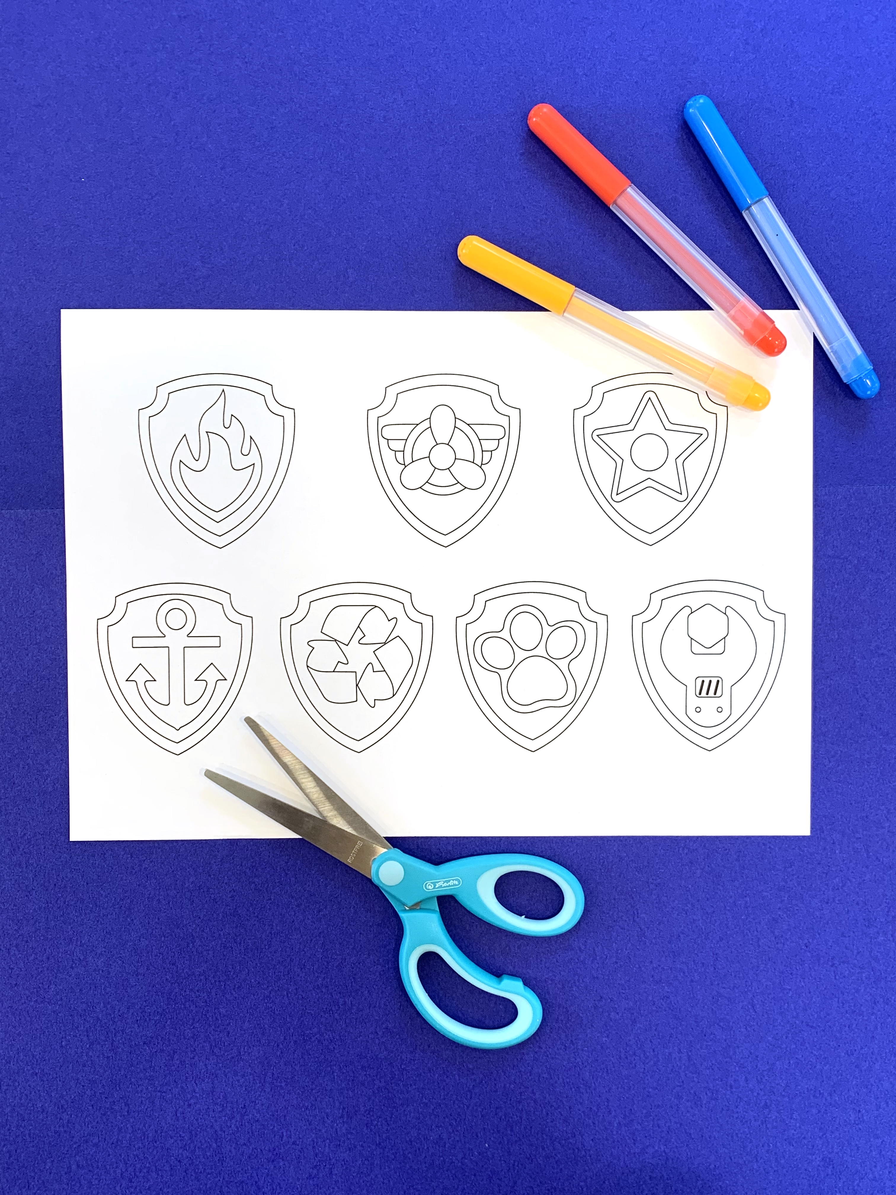 - Étape 2: Tu peux maintenant colorier et découper les timbres de police. Une fois qu'ils sont coloriés, place-les sur un carton et utilise-les comme gabarit. Découpe le carton et colle la marque dessus.
